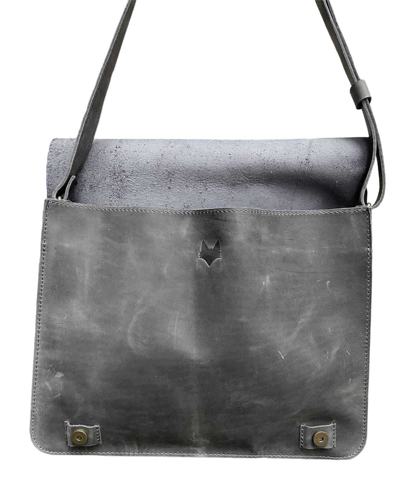 Handmade leather messenger bag with easy adjustable strap, it fits laptops and different items you can store in its independent compartment. Perfect for everyday use and for those who ride a bike or a motorbike to work.